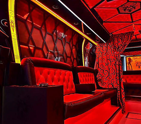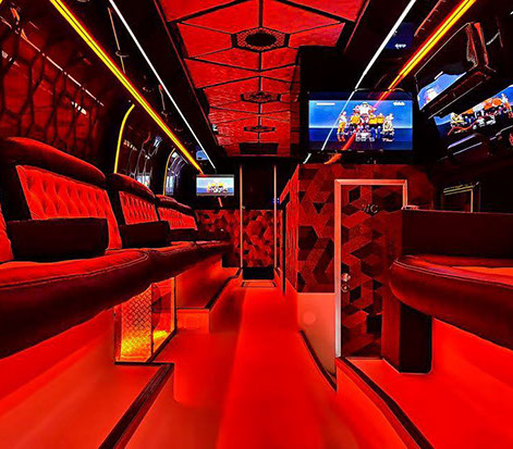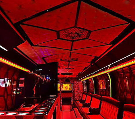 Парти буса е оборудван с вграден бар с чаши и ледарки, аудиосистема, телевизор, DVD, ефектно оптично и LED осветление, кожен салон, преграда между шофьора и пътниците, климатроник и интерком. Към целият този лукс може да добавим декорация с цветя, бонбони и шампанско - така предоставяме на Вас - нашите клиенти, един пълен завършек на приказната Ви разходка!