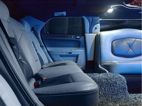 Автомобила е оборудван с вграден бар с чаши и ледарки, аудиосистема, телевизор, DVD, ефектно оптично и LED осветление, кожен салон, преграда между шофьора и пътниците, климатроник и интерком. Към целият този лукс може да добавим декорация с цветя, бонбони и шампанско - така предоставяме на Вас - нашите клиенти, един пълен завършек на приказната Ви разходка!